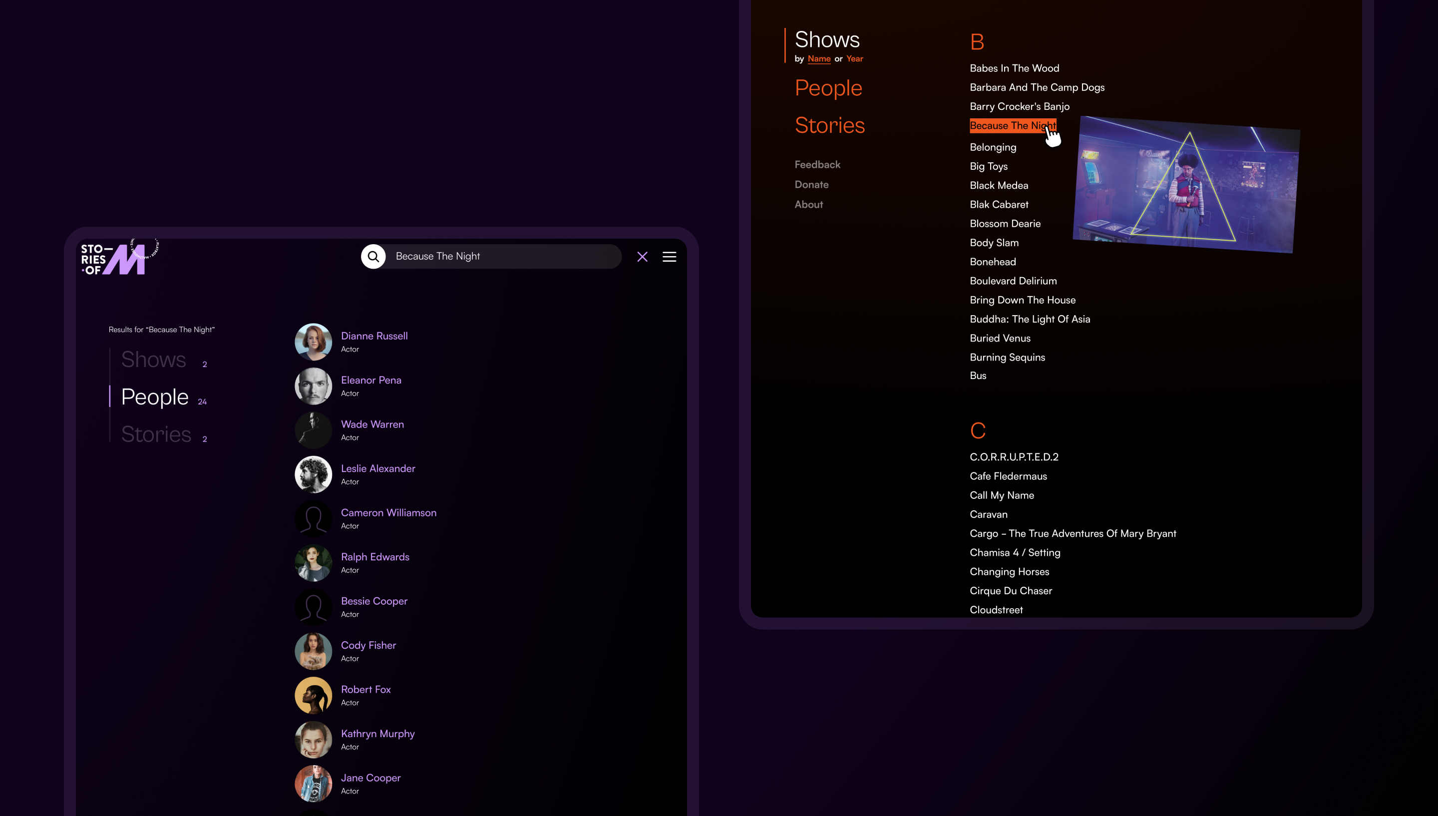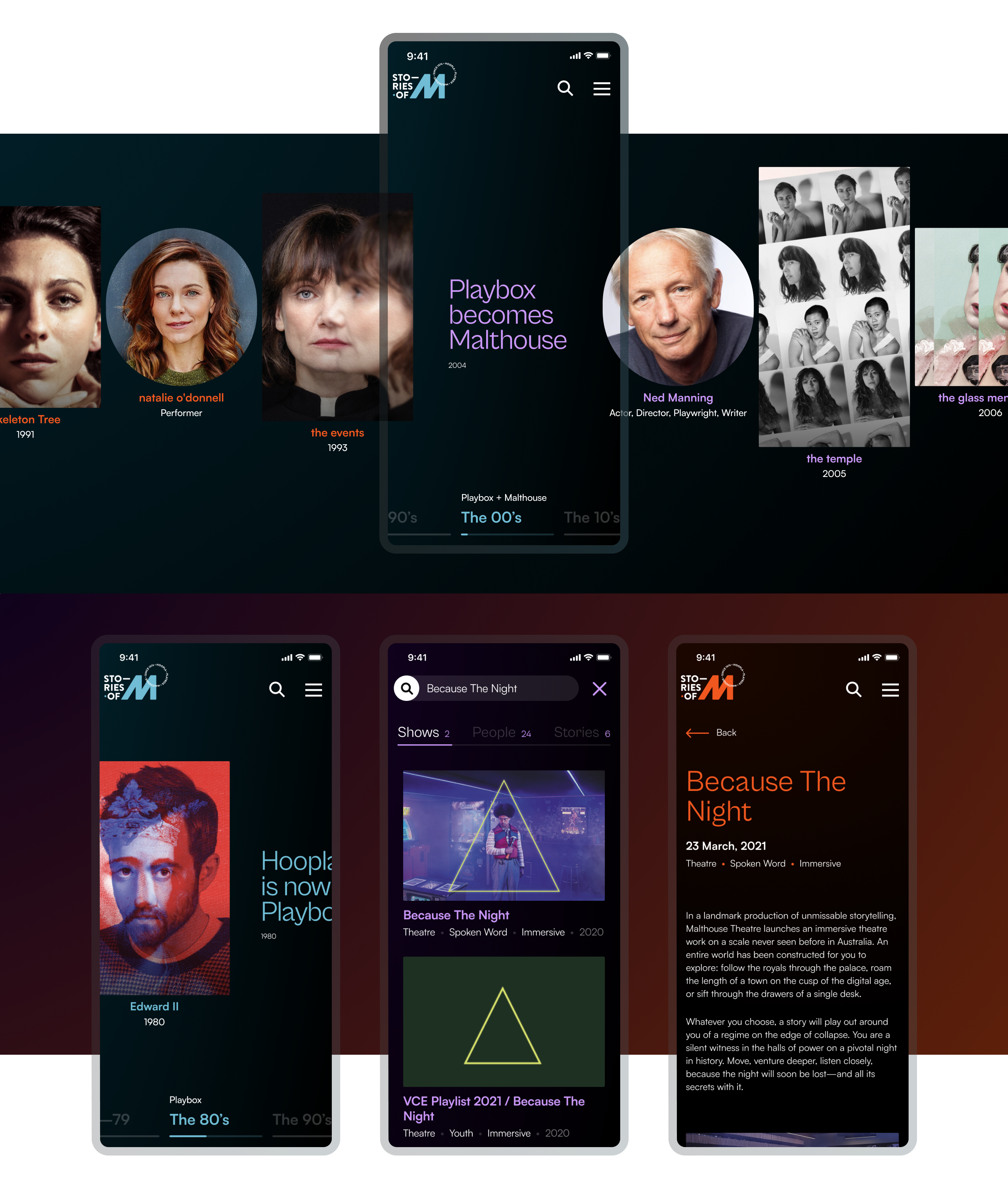Stories of M cements the Malthouse Theatre’s position as an important cultural hub in the Melbourne arts scene. It sets a benchmark for the presentation, sharing and celebration of historical arts institutions (and their shows, people and stories) in Australia. The solution has been incredibly well received by peers in the arts industry who were consulted in the UX development and testing phases.